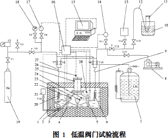 如圖1所示,基于計算機數(shù)據(jù)采集的低溫閥門試驗裝置依次包括:
