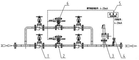 由于工廠生產(chǎn)工藝的需要,蒸汽是必不可少的工藝介質(zhì),需要從電廠輸入蒸汽,因電廠到工廠的距離較遠(yuǎn)存在壓力波動較大的情況以及工廠在實際使用的蒸汽流量波動范圍較大,因此在進(jìn)入工廠的蒸汽主管道壓力進(jìn)行減壓穩(wěn)壓,特別是在蒸汽用量很小時,即閥門的開度很小,閥門在小開度情況下不是很穩(wěn)定,容易出現(xiàn)閥門震蕩。解決方案:采用兩個氣動控制閥或者兩個電動控制閥并聯(lián)的方式來應(yīng)用。