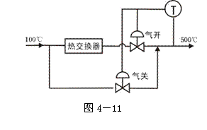 氣動(dòng)三通調(diào)節(jié)閥使用在蒸汽管道及導(dǎo)熱油管道中較為常見,一般分為分流型及合流型;當(dāng)氣動(dòng)三通調(diào)節(jié)閥使用于高溫或高溫差時(shí),由于高溫流體通過,引起管子膨脹,使氣動(dòng)三通調(diào)節(jié)閥產(chǎn)生較大應(yīng)力而變形,造成連接處的損壞和泄漏,尤其在高溫差時(shí)影響更為嚴(yán)重。一般要求氣動(dòng)三通調(diào)節(jié)閥的溫差小于150℃,當(dāng)溫差過大時(shí)可采用兩個(gè)氣動(dòng)二通調(diào)節(jié)閥來代替一個(gè)氣動(dòng)三通調(diào)節(jié)閥。(同理也適用于電動(dòng)三通調(diào)節(jié)閥)如圖4-11所示。