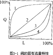 當(dāng)調(diào)節(jié)閥兩端壓差△P保持不變時(shí),閥的流量特性稱為固有流量特性。固有流量特性主要有直線、等百分比(對(duì)數(shù))、拋物線和快開等4種類型,如圖3-1所示: