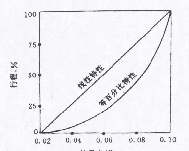 (2)信號、轉(zhuǎn)角與行程的關(guān)系:等百分比特性與線性特性之間信號、轉(zhuǎn)角與行程的關(guān)系是不同的,在現(xiàn)場使用時(shí)按表2和圖1進(jìn)行調(diào)校。