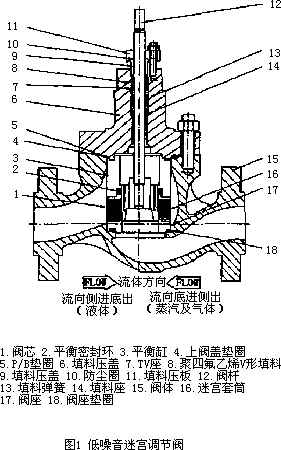 低噪音迷宮調(diào)節(jié)閥是一種流體壓力平衡型套筒闊(圖1、圖2)。該閥適合于對(duì)高壓差流體的控制。由于采用了迷宮套筒,可以完全控制流體流經(jīng)閥內(nèi)件時(shí)的流速,從而大幅度降低了高壓差氣體和蒸汽產(chǎn)生的噪音,能有效防止液體產(chǎn)生汽蝕,提高調(diào)節(jié)閥的使用壽命。