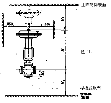 如圖11-1,如果頂部組件需拆卸,閥門的上方應(yīng)留有足夠的空隙H2;