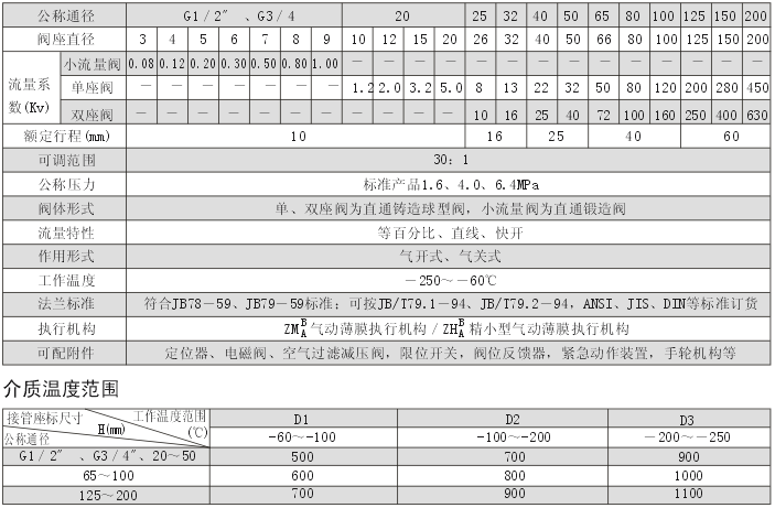 3、氣動薄膜低溫調(diào)節(jié)閥主要技術(shù)參數(shù)