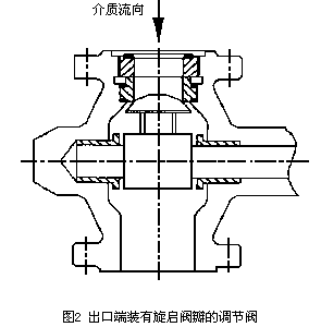 閃蒸破壞是高速度的飽和氣泡沖擊閥體表面,并腐蝕閥體表面造成的。由于角形閥中的介質(zhì)直接流向閥體內(nèi)部下游管道的中心,而不是象球形閥一樣直接沖擊體壁,所以大大減少了沖擊閥體體壁的飽和氣泡數(shù)量。從而減弱了閃蒸的破壞力。因此在閃蒸破壞出現(xiàn)的情況下,角形閥體設(shè)計(jì)比球形閥體更為經(jīng)濟(jì)。帶有旋啟式閥瓣的閥門結(jié)構(gòu)(圖2)也是一種有效的防止閃蒸破壞的方法。在閥體內(nèi)部下游的一側(cè)安裝了旋啟式閥瓣,液體的壓力在閥體的下游處降到飽和壓力以下,閃蒸出現(xiàn)在下游管線。在某些情況下,常常采用由一段下游管道承受閃蒸破壞的方法保護(hù)閥門。
