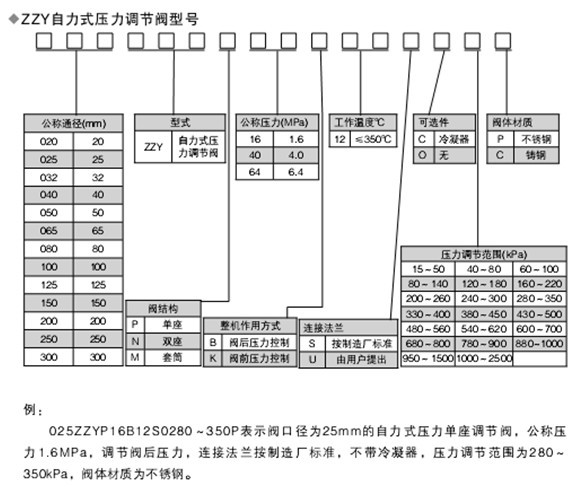 自力式壓力調(diào)節(jié)閥的型號(hào)編制: