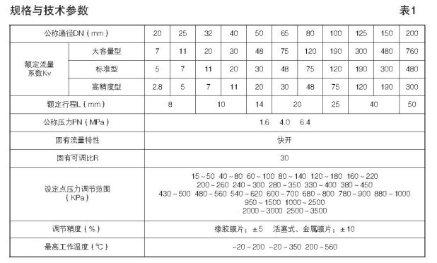 一、自力式壓力調(diào)節(jié)閥的規(guī)格及技術(shù)參數(shù):