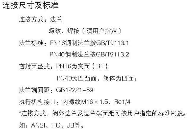 二、自力式帶指揮器型壓力調(diào)節(jié)閥的連接尺寸及標準