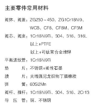 三、ZZY-II型自力式帶指揮器型壓力調節(jié)閥的主要零件常用材料: