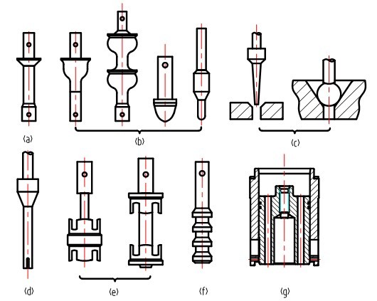 a)平板型閥芯、b)柱塞型閥芯 、c)球型、針型閥芯 、 d)圓柱體上銑出小槽閥芯 、e)窗口型閥芯、f)多級閥芯、g)套筒閥閥芯
